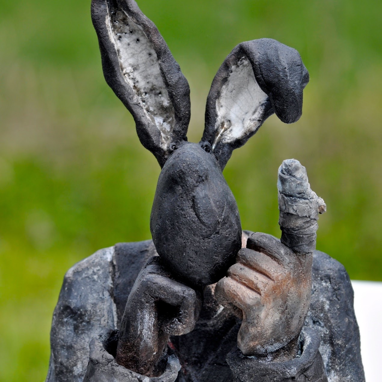 der Hasenvater zeigt seinen wunden Daumen,kommt wohl vom Geld zählen...e.b.